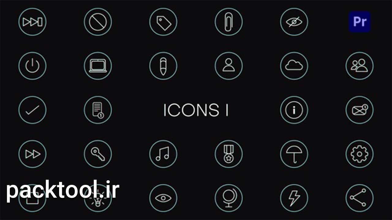 دانلود آماده پروژه پریمیر پرو آیکون های خطی متحرک Line Icons Pack